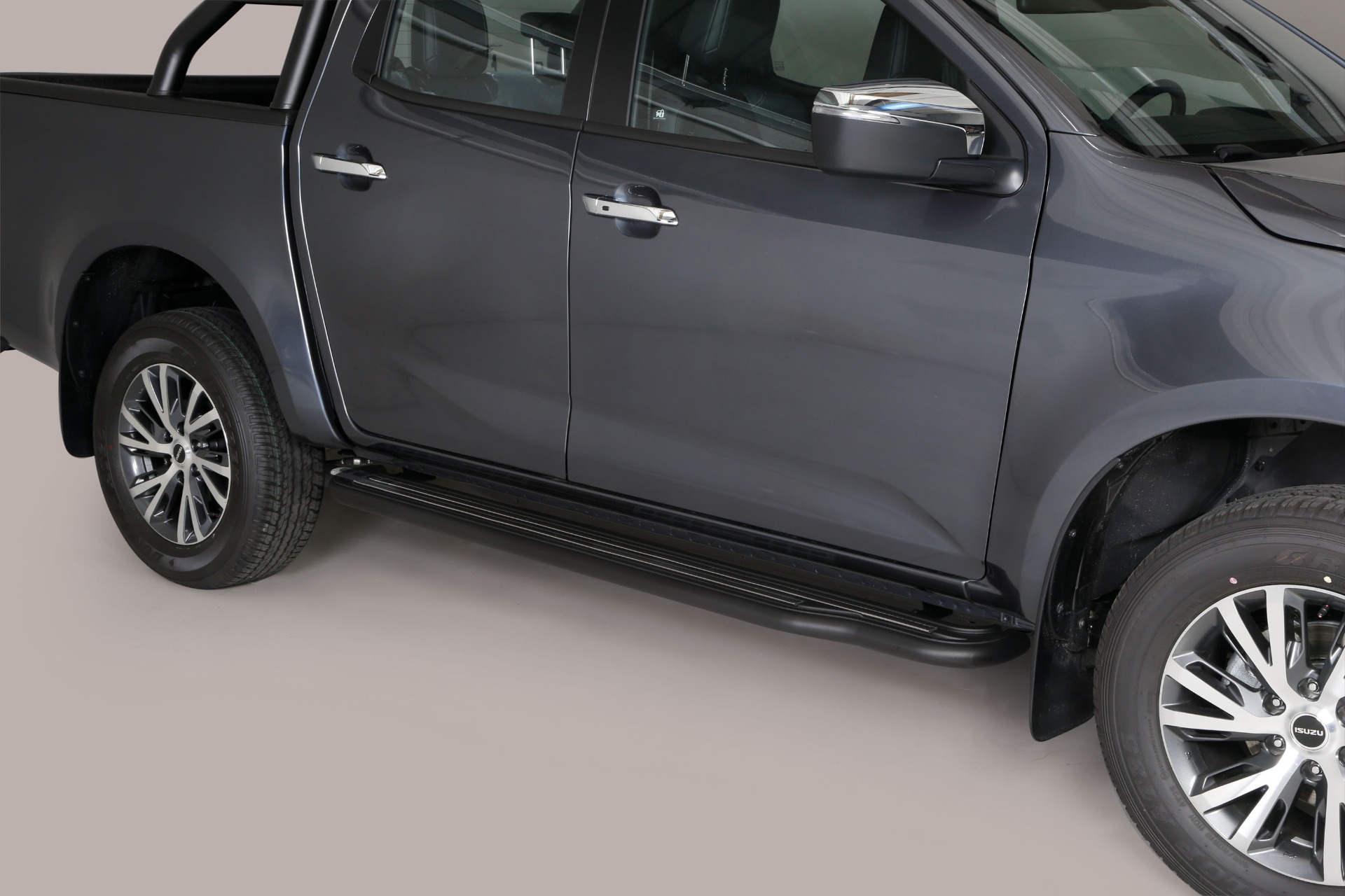 Boční nášlapy pro snadnější přístup do kabiny. Zajišťují pasivní boční zabezpečení.