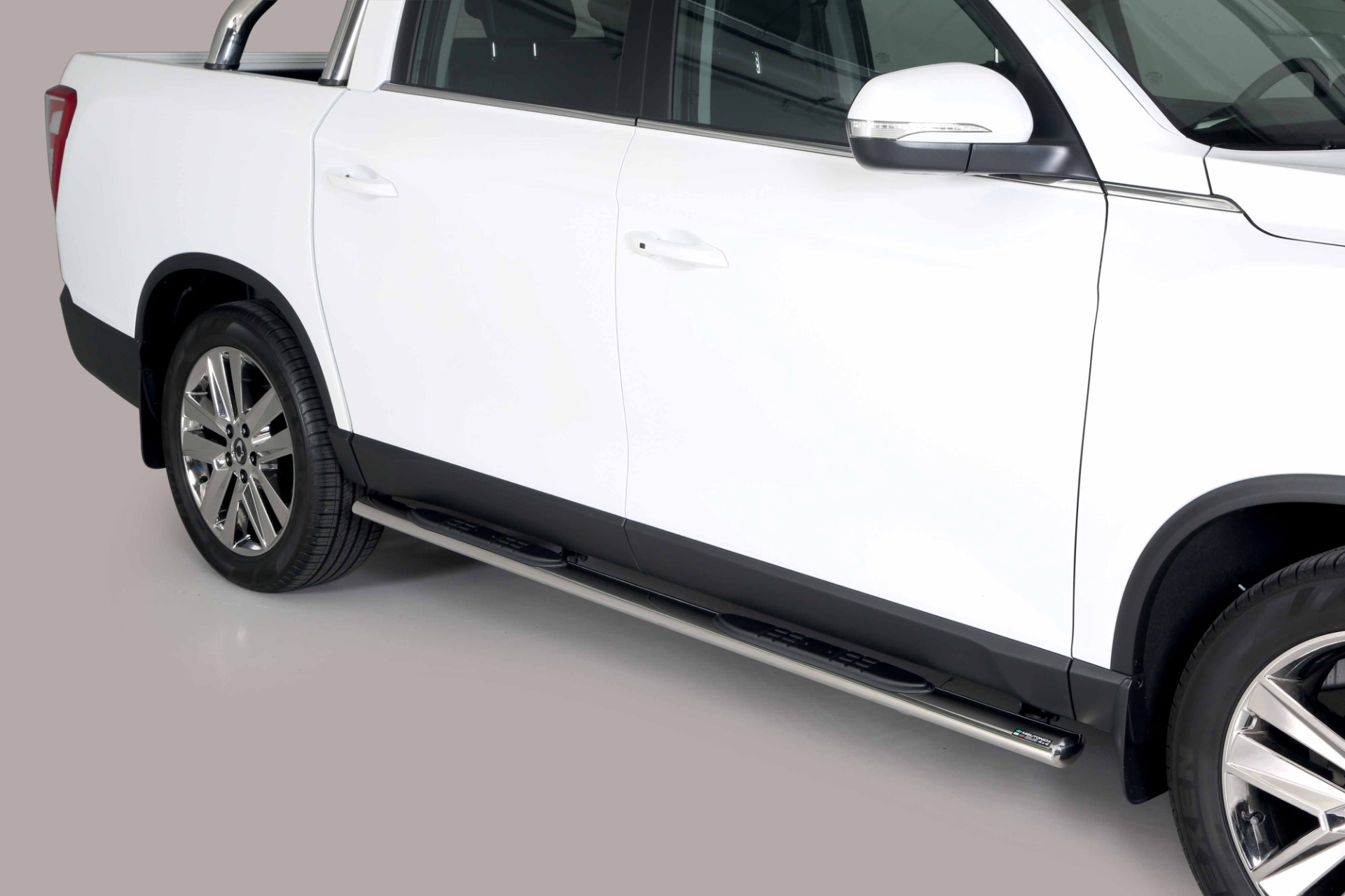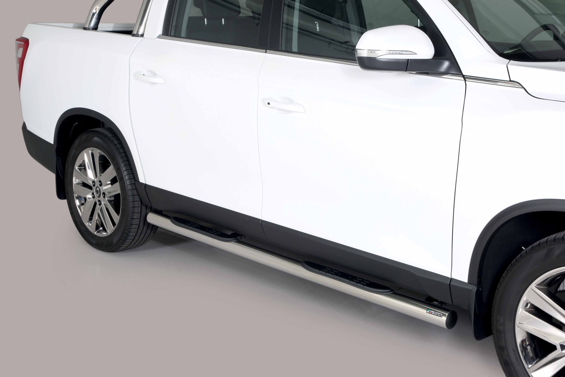 Boční nášlapy pro snadnější přístup do kabiny. Zajišťují pasivní boční zabezpečení.