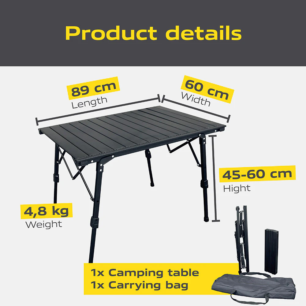Tento přenosný kempingový stůl váží pouhých 4,8 kg, takže je skutečně lehký. Je ideální pro kempování, festivaly, pikniky nebo výlety autem – stačí ho sbalit a vzít si ho kamkoli s sebou.