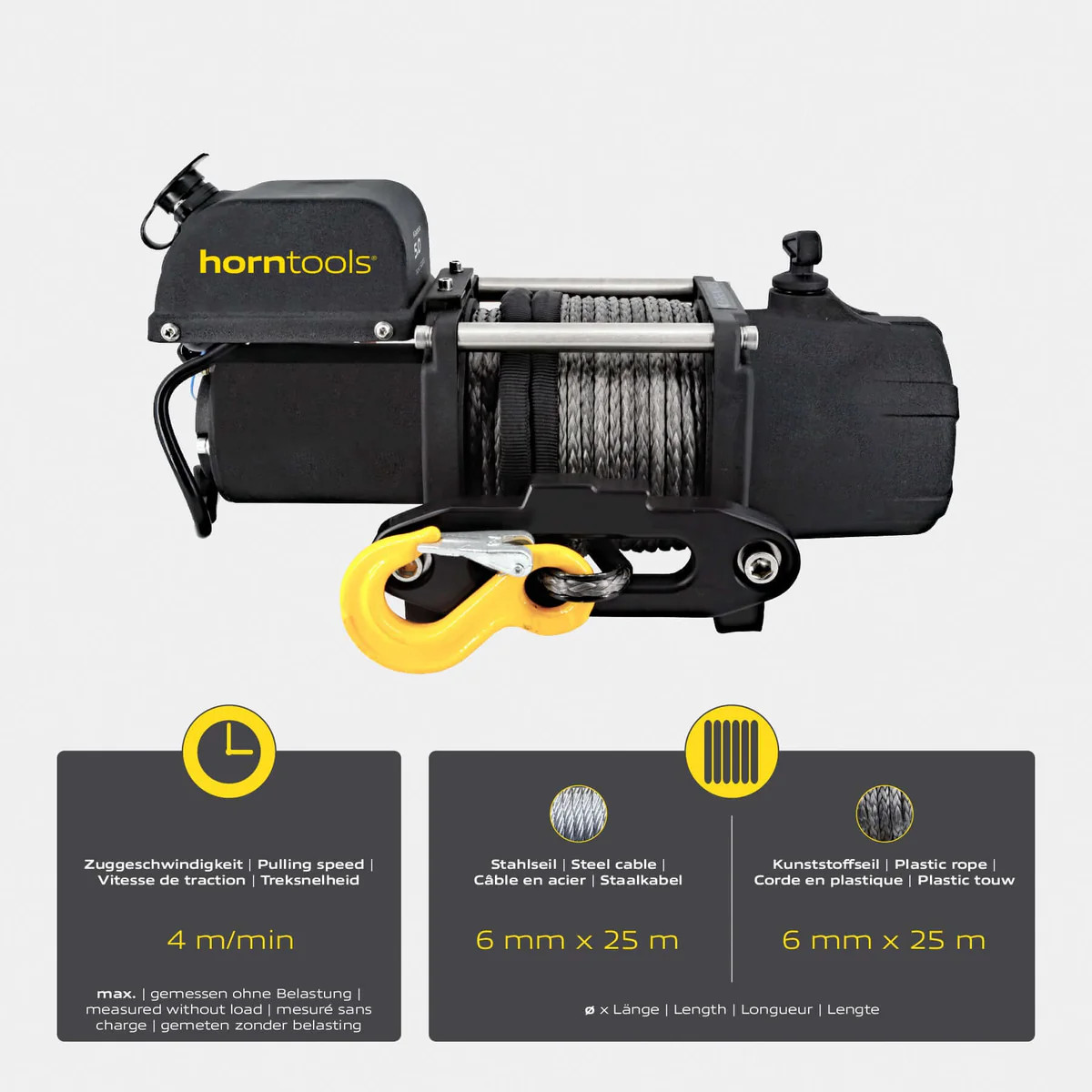 - Lano (∅ x délka): 6 mm x 25 m